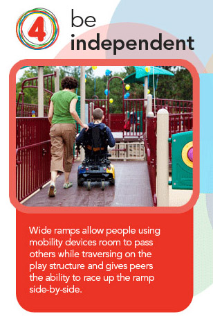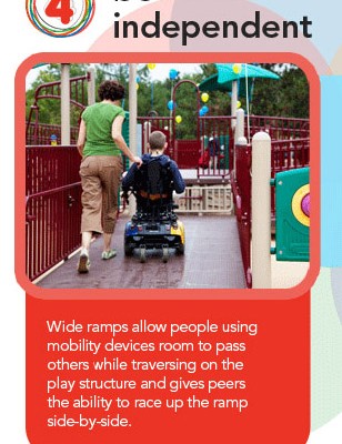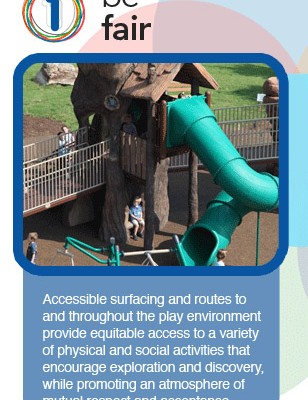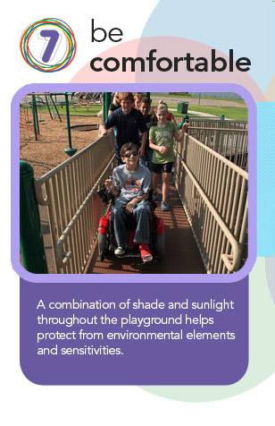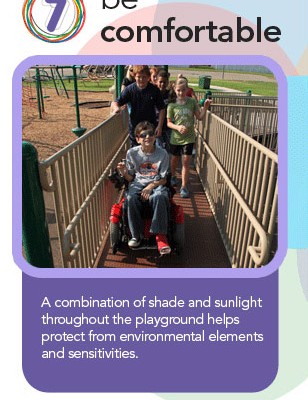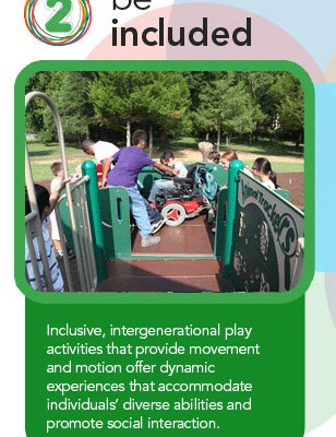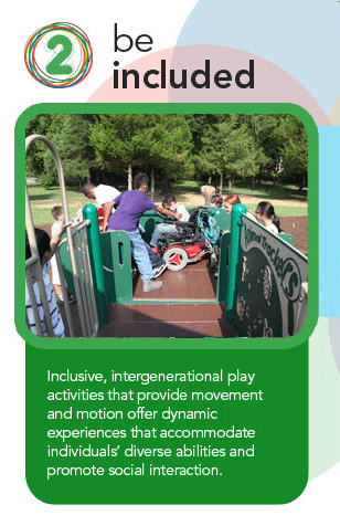 The Me2 program was developed to serve as an educational resource for communities that are planning, creating, or revitalizing outdoor play environments. Inclusive playgrounds make a fundamental statement about how communities value meaningful play experiences for people of all ages and abilities. The 7 Principles of Inclusive Playground Design™ create universally designed play environments that increase the “playability” for people of diverse abilities, age, race, gender, ethnicity, culture, and socioeconomic status. Implementation of these best practice principles helps create a unique and meaningful play environment that is usable by more people, to the greatest extent possible.