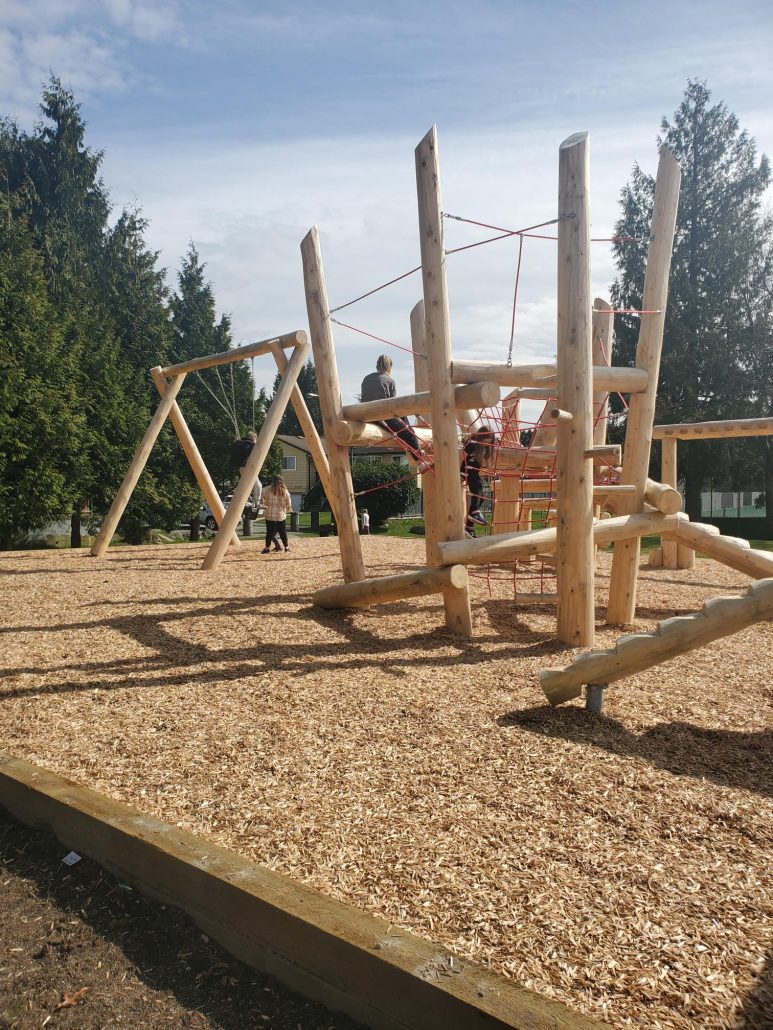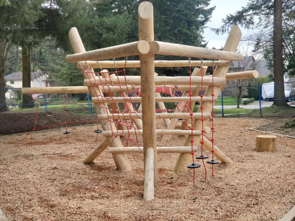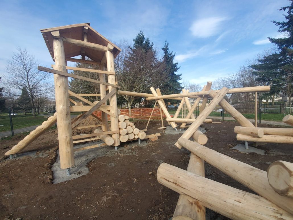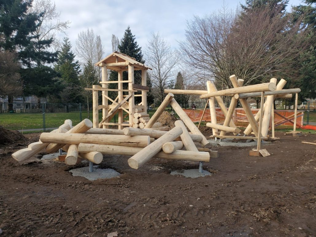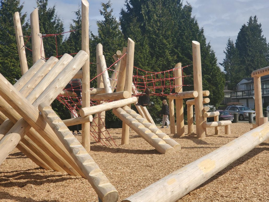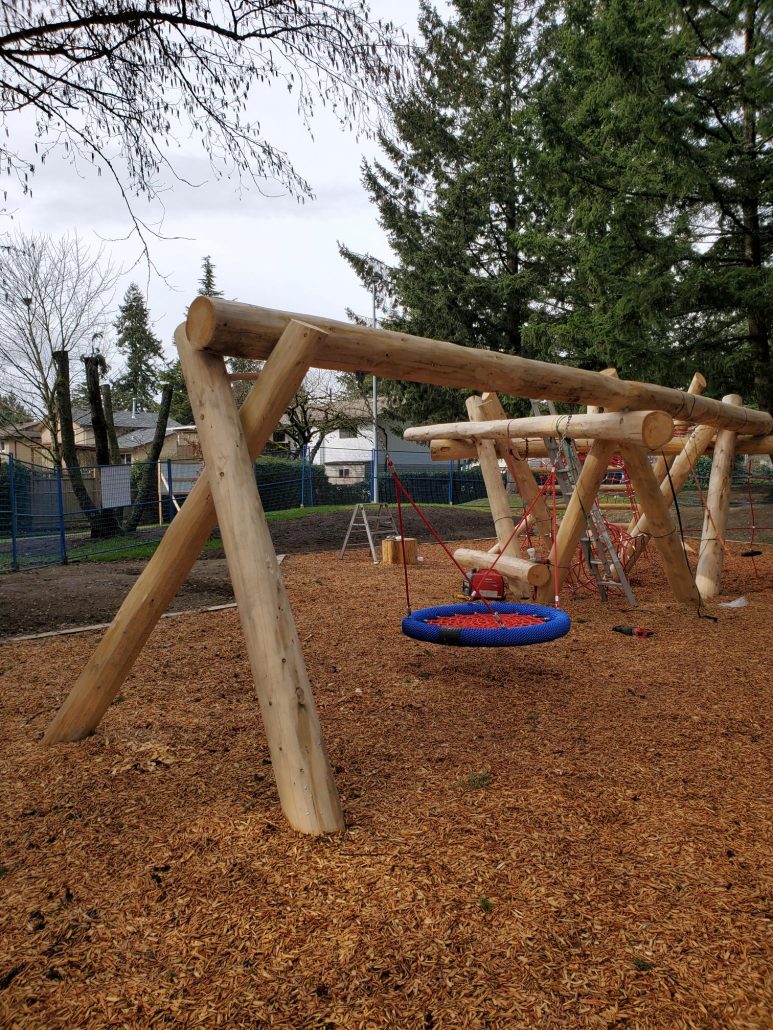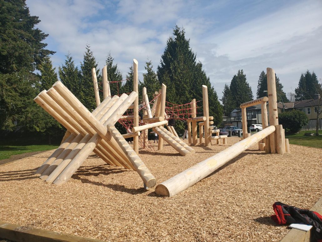 Concrete poured on the newly installed Strawberry Hill Hall park in Surrey BC Wooden playground equipment creates a natural play environment and invites children to interact with natural materials and structures! we are working quickly before the park opening! 100% cedar construction built with your safety in mind. Strong enough for the whole family and growing kids!