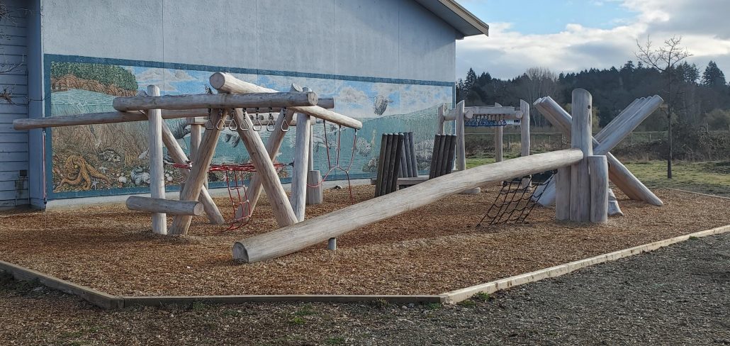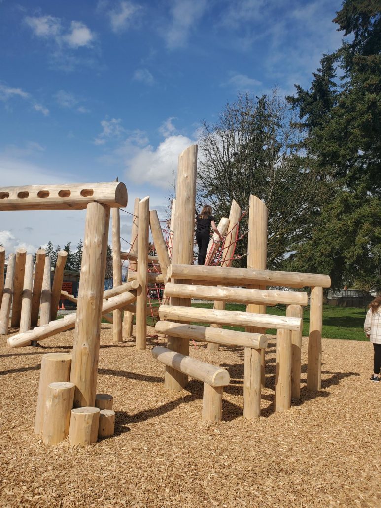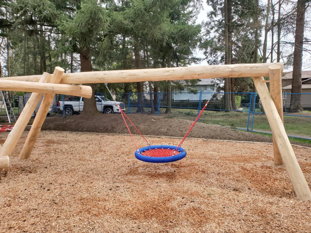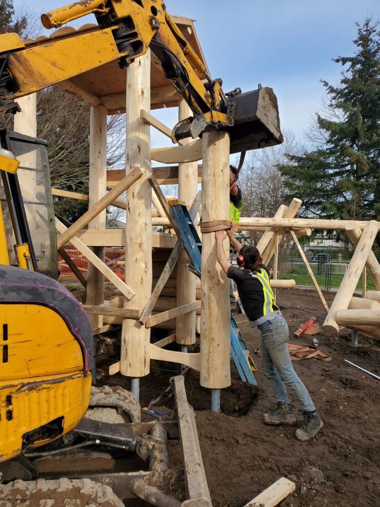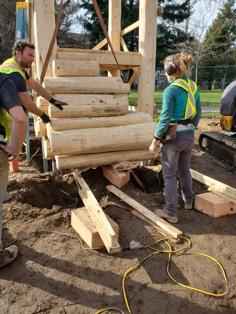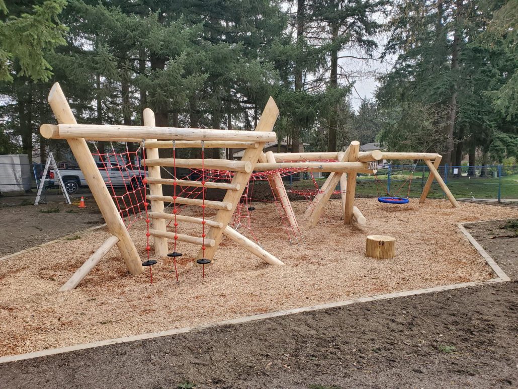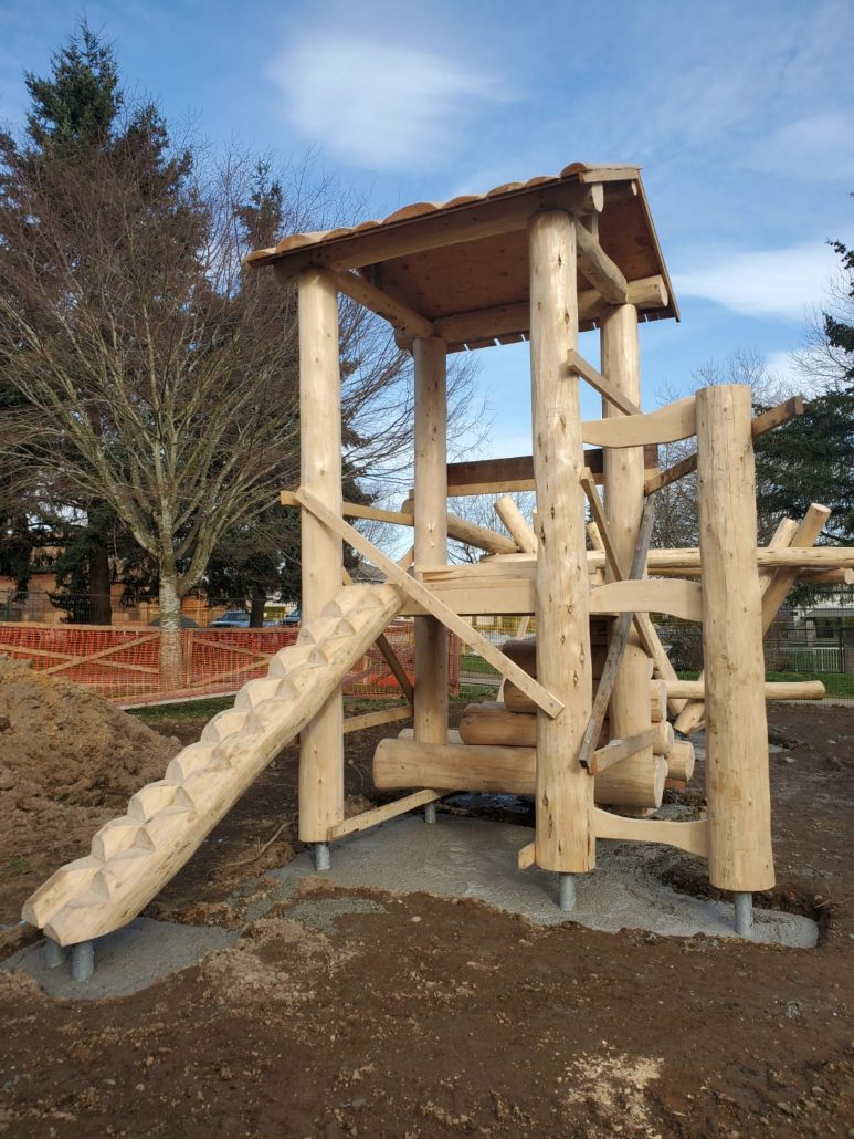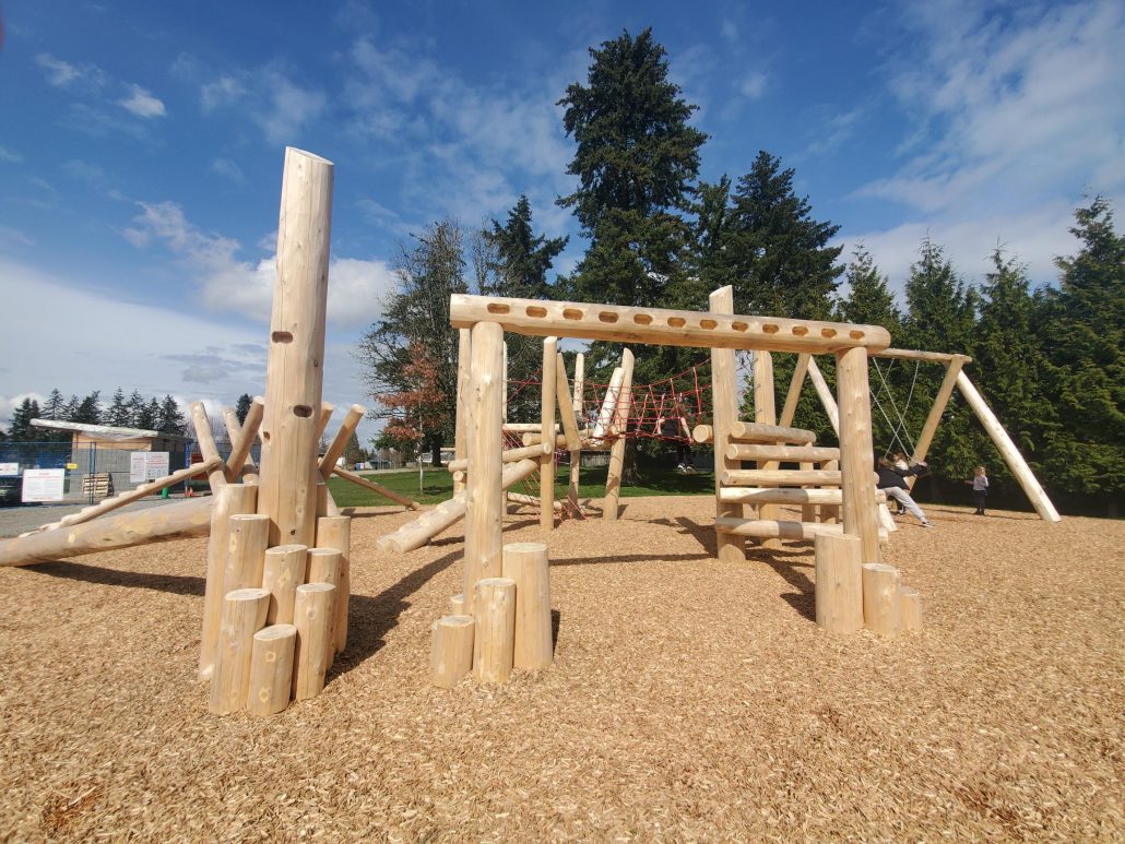 Concrete poured on the newly installed Strawberry Hill Hall park in Surrey BC Wooden playground equipment creates a natural play environment and invites children to interact with natural materials and structures! we are working quickly before the park opening! 100% cedar construction built with your safety in mind. Strong enough for the whole family and growing kids!